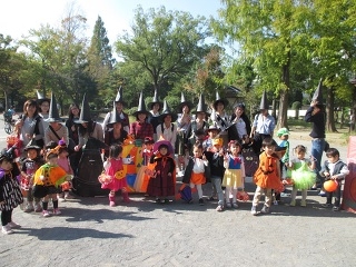 秋も深まってきましたね。今年も恒例のハロウィンパーティー。思い思いのコスチュームで楽しみました。今年はトマト周辺をねり歩き・・。途中でお菓子をもらいました。 手作りハロウィンバックを持っていっぱいになったお菓子たちを見て満足げな^^子供達でした。