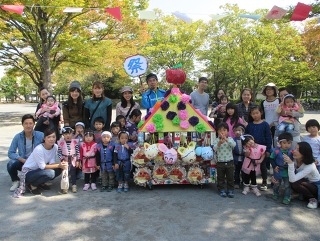 みんなが楽しみにしていた、秋レクご家族の皆さんにもたくさんご参加いただき晴天の中元気に過ごしました。くり号とぶどう号、2基のおみこしをわっしょいわっしょいして公園内を歩きました。まめしぼり、ハッピ姿でお祭りモード全開でした。