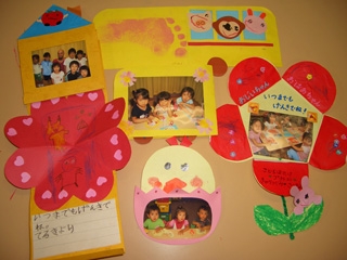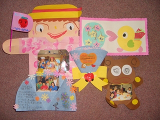 もうすぐ父の日。プチトマトの未就園児は、父・母の日のプレゼントを一緒に作ってお持ち帰りします。ラディッシュさんはきっとうまれて初めてのプレゼント。ちっちゃな手でレターラック。レタスさんは2段になった小物入れ。キャベツさんはお花のアドバルーンメモボード。各クラスで大好きなパパとママのために頑張って作りました。「パパとママ喜んでくれるかなー」と心を込めてのプレゼントです。お顔も上手に描けました。大切に使ってくださいね。