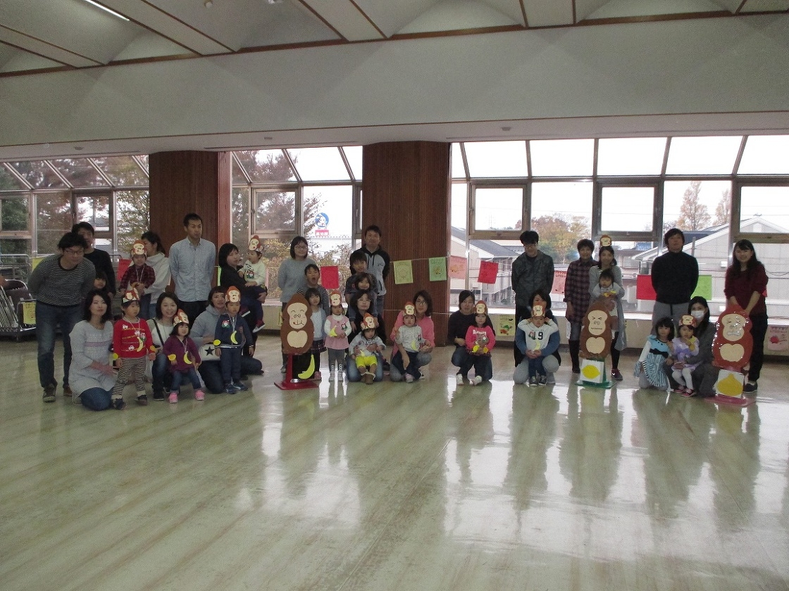 昨年に続き雨模様・・前日から室内のレクになることをお伝えしホールで行いました。くいしん坊のゴリラになったり・リトミック・親子体操と盛りだくさんな内容で普段お会いすることのできないご家族の皆さんとも交流を持てた貴重な一日となりました。まだ小さいお友達はお外よりもまとまって競技ができて良かったかもしれないです。日頃の運動不足?解消になったでしょうか~みんなの笑顔。見ていて微笑ましいママと楽しんいる姿に嬉しく思いました。