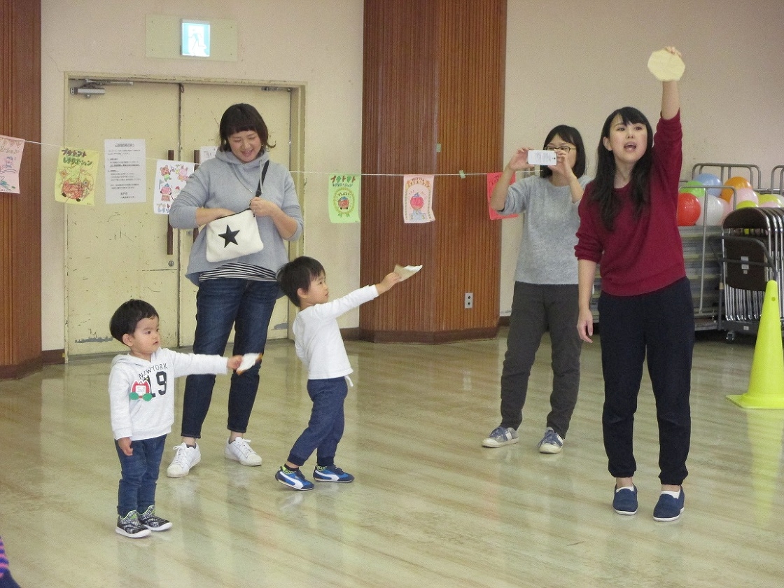 雨マークが消えて、快晴の中で秋レクしました。しいの木台に移転して3回目の秋レクです。2年続けて☂でした。今年はなんてラッキーな。眩しい太陽が。ご家族の皆様と楽しみました。親子体操。リトミックなど。講座の中で行っているおしりフリフリダンス、パンダもパン屋さんもゲームしました。親子で楽しんでいる姿はとってもほほえましく、運動不足かいしょうの一日になったと思います。