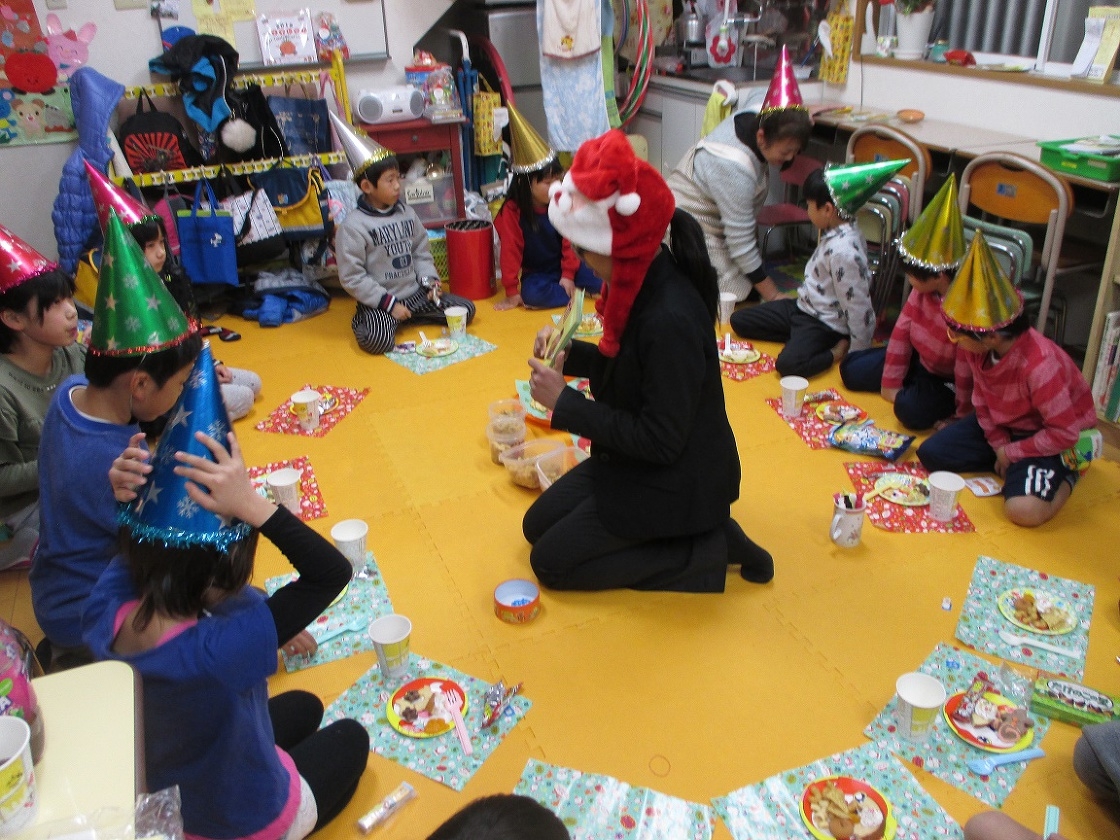 未就園児はママと一緒に幼稚園児と小学生は最終講座でクリスマスしました。小さいお友達はサンタさんの登場で大泣きです。震えているお友達も。パン講座、体操、おゆうぎなどママと一緒に楽しみました。今年はかわいいリースを作りました。幼、小コースはMary先生とのゲーム。クリスマスソングでdanceなど。軽食もしつつたのしみましたよ。「サンタさんて本当に要ると思う人~」との高学年さんの問いかけに全員が大きな声で「はーい!」と。サンタさんいますよね💛