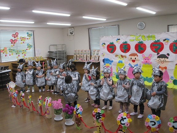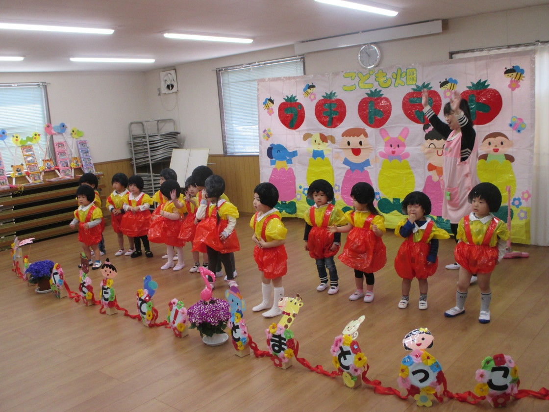 今年度最後の行事。未就園児のお楽しみ会しました。ご家族の皆様も参加していただき、一日楽しみました。ちびまるこちゃんのお遊戯の披露。リトミックコースの発表、親子体操もしました。楽しい思い出の一日になってくれたら嬉しです。練習ではしっかりおどれたまる子ちゃんなんですがちょっと元気がなかったかな・・。でもせんせいのまねっこをしながら踊っていました。ランチタイムではみんなで一緒に会食もしました。