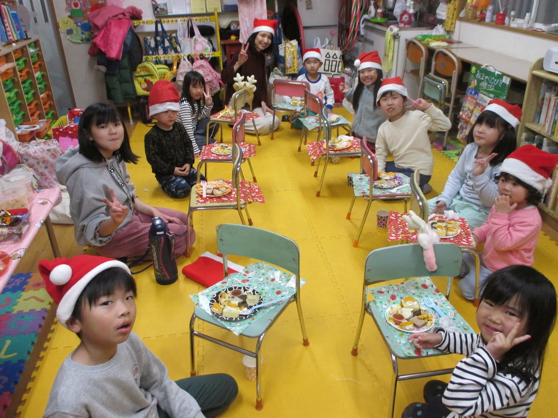 あっという間に一年が過ぎてしまいます。HPの更新も春レクから遠ざかっていました。ブログ日記には通常の様子をおしらせしております。たくさんのご協力ありがとうございました。Christmaspartyを各クラス合同で、未就園児さんはしいのき会館で行いました。毎年サンタさん登場で泣いてしまうお友達が・・でも今年は誰も泣かずにプレゼントもらいました。EnglishClubはクリスマスBINGOやカード遊びそしてパクパクの飲食もして楽しいひと時でした。