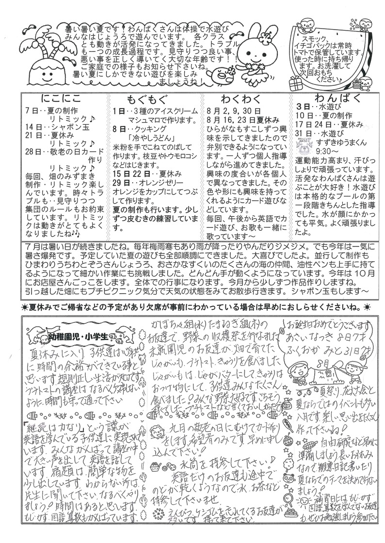 2017.07.268月のお便りです。