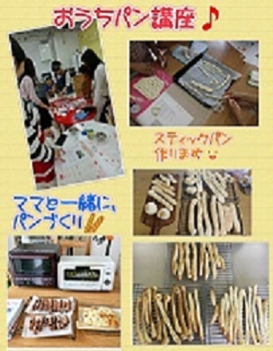 ちびっ子たちは夏休みも終わって通常講座が始まっています。なんだか久しぶりに会ったお友達は一回り大きくなっていましたよ。子供の成長はあっという間ですね。9月28日におうちパン講座します。外部のお友達も参加できます。ママと一緒なので共に楽しめる時間になると思いますよ。是非ご参加くださいね。今回はチョコスティックパンとミルクスティックパンです。下準備をして発酵させたものをこねて焼いて食べるそうです。おうちパンマスターの峯 ゆう先生が指導します。オーブントースターで焼くんです。パン作りは面倒と思っているけど、手作りしてお子様にと思っている方には朗報ですよ。簡単にできます。