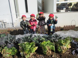平成29年。風邪ひきさんもいますが、みんな元気いっぱいで新しい年を迎えています。しいの木台教室を開設して9月中旬ごろから育てていた野菜たちを収穫し始めました。ブロッコリー、白菜、キャベツ等々水をまきつつ育ててきました。先生たちも初めての畑仕事。四苦八苦しながらの挑戦!!でも初めてにしては上出来です^^採りたては甘い!おいしい!大感激です。来週はお料理のもぐもぐ組でスープやたこ焼きを作ります。きっと格別の味がするはず★2月16日から29年度の無料体験をします。未就園児コース・Englishclub の体験となります。是非楽しい体験を経験してみてくださいね。今年もたくさん楽しいことを計画し、子供たちの学力up、一人ずつしっかり育っていくように指導してまいります★★