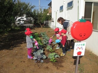 紫キャベツ、白菜、セロリ・・・・たくさん苗を植えました。どんどん大きくなる様子を観察しつつ毎日水まき草むしりしています。小さいお友達も土の感触に慣れてきましたよ。でもバッタさんや青虫さんに食べられてしまいます。収穫できるでしょうか・・。Halloweenの制作,みのむしさんたちの共同制作も終えて、来週からはクリスマスツリーの制作をしたり、秋のお散歩をしたりします。11月19日はしいの木台教室のお友達。そして懐かしの^^新松戸教室のお友達と一緒に秋レクします。たぬきさんに変身して踊ったり、体操、リトミックと盛りだくさんの内容です。久しぶりに会えるお友達。そしてリーダーさんになってくれるしいの木台教室のみんなと楽しい一日を過ごしたいと思います。