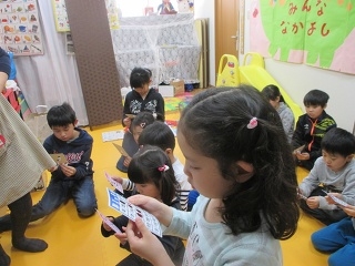 幼稚園年長は卒園!!おめでとうございます!!Mary先生とビンゴ、ダーツゲームしました。みんな真剣です・・。でもトップは先生・・^^今年度最後のLessonはゲームをしたり、お祝いしたりと楽しく過ごしました。4月からは入園。入学。進級ですね・・新しく英語のクラスを開設。お友達を迎えます。トマトカラーに早く慣れて楽しく元気にLesson。しばしの春休み楽しんで5,6日からのスタートに備えましょう。9月の開設からあっという間の3月。子供たちもすっかりMary先生とのスキンシップ^^トマトっ子になっています。